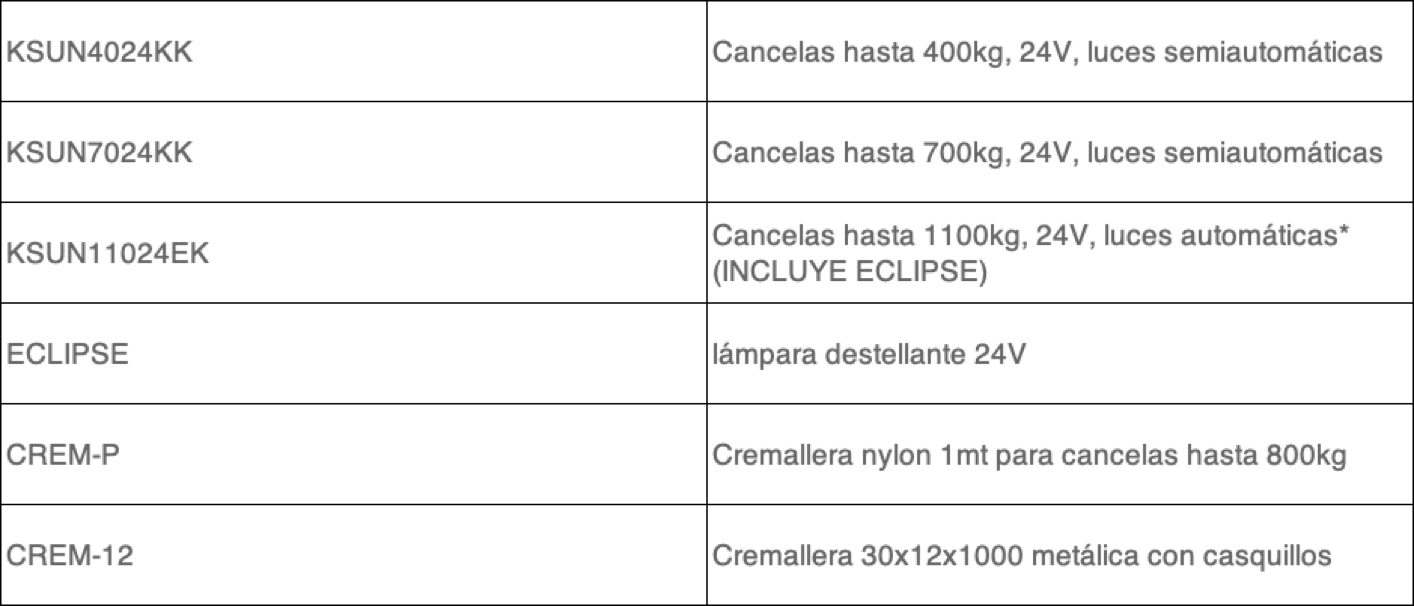 SUN KIT 24V NLS compuesto por: motoreductor 24V + central 14A + receptor 4 canales 1000 códigos + fotocélula tx/rx + 1 emisor SUB resistent al agua + KUBE bluetooth usuario final (Eclipse en kits luces automáticas)