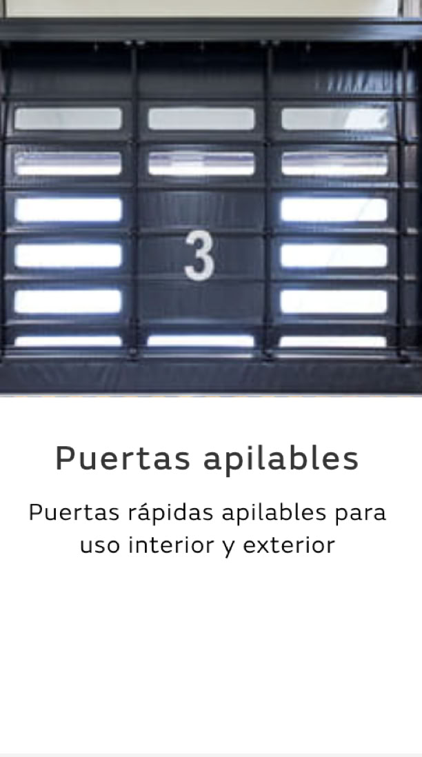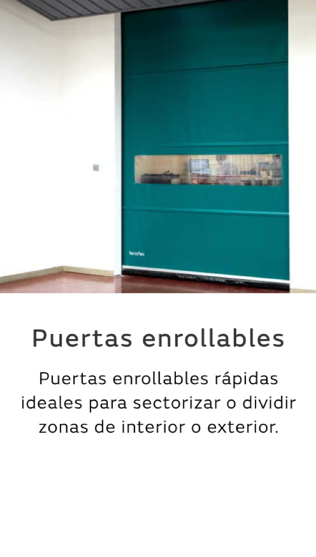PUERTAS SECCIONALES  - PUERTAS RAPIDAS - PUERTAS ENROLLABLES ALUMINIO - PUERTAS CORTAFUEGOS  RF - PLATAFORMAS DE CARGA ABRIGOS DE MUELLE - PASARELAS - MESAS ELEVADORAS - PUERTAS BATIENTES PVC CORTINAS DE LAMAS - CONTROL DE ACCESOS PARKING - BARRERAS - PROTECCIONES
