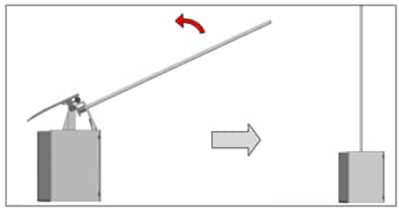 1. Se introduce la palanca de manejo en la cavidad ubicada al lado de la plataforma y se tira de ella hacia atrás. La plataforma se elevará por acción de los resortes hasta quedar en posición vertical y anclada por la barra de anclaje.